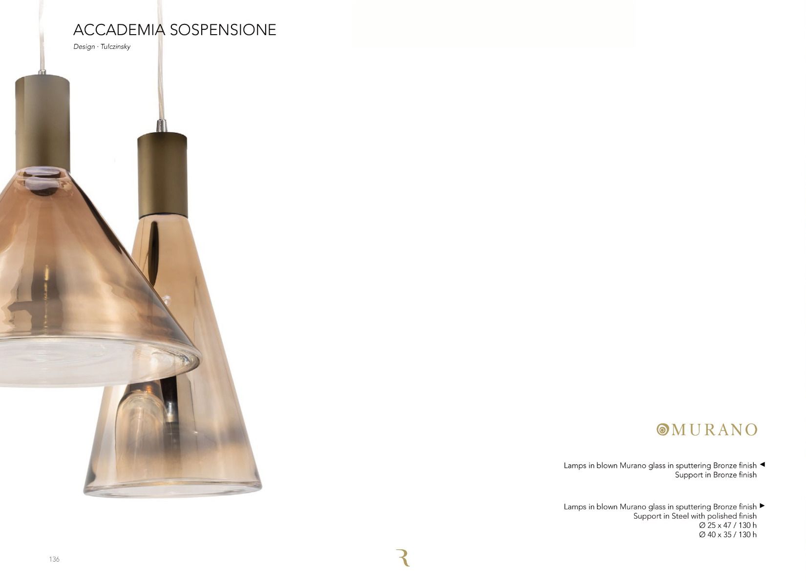 Accademia Suspension - Reflex joins the Accademia collection of the Reflex company by designer Tulczinsky. The lampshade has been designed in two sizes and is made of Murano glass available in copper, bronze and silver shaded finishes.