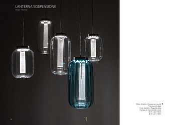 - Form: The Reflex Lanterna Sospensione may feature a distinctive shape or silhouette, possibly incorporating elements like glass panels, metal frames, or decorative accents that enhance its visual appeal.