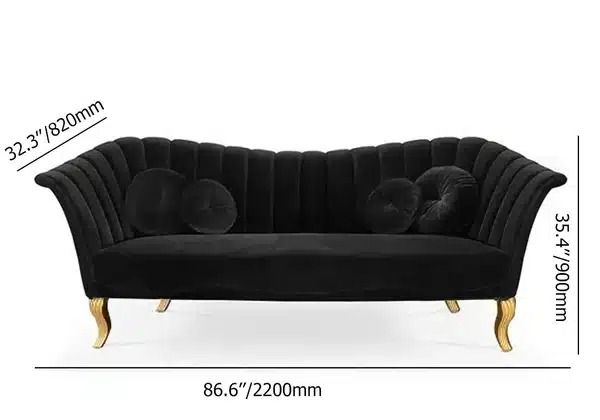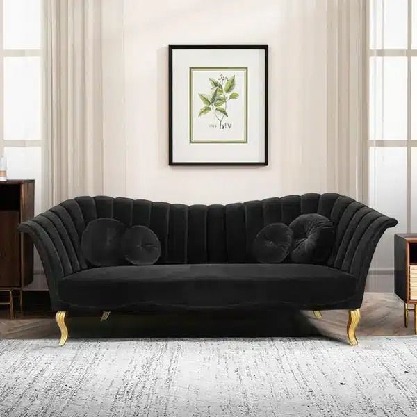Designed with vertical-channel tufted and carved accents, this 3-seater upholstered sofa emits a strong sense of mid-century style, which will take your home up to a notch. Boasting velvet upholstery and elastic foam filler, it allows soft touch and superior comfort. In addition, it features a large rectangular seating area and a tight backrest that melt away any fatigue with ease. Come with a solid wood frame and wood legs, it offers sturdy support and gives long-lasting stability for years. Well-suited for your ensembles, pick it!