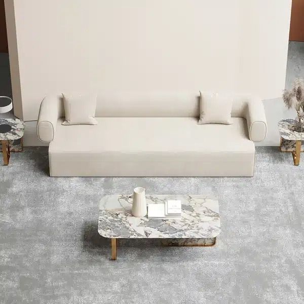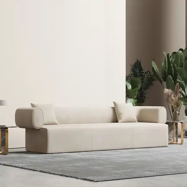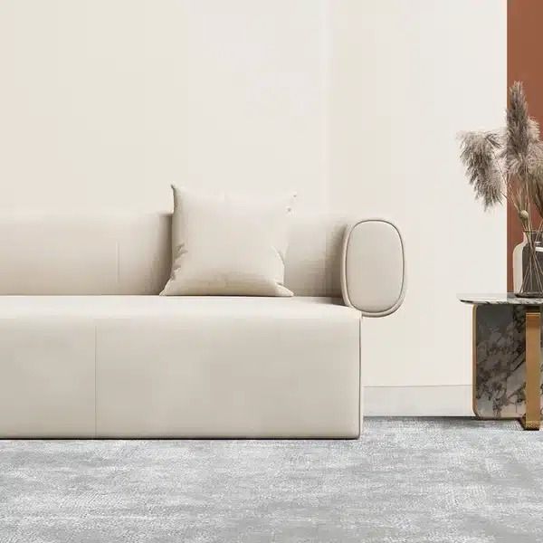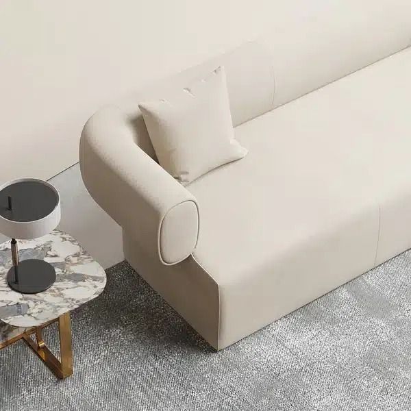 This sofa will be a perfect selection for you to set in your house because of the minimalist and modern design. The matte leath-aire fabric, round arms and low back in off-white are dream collocation to create a charming seating. High density sponge is such soft that allows you to have a easy time after a long working day.