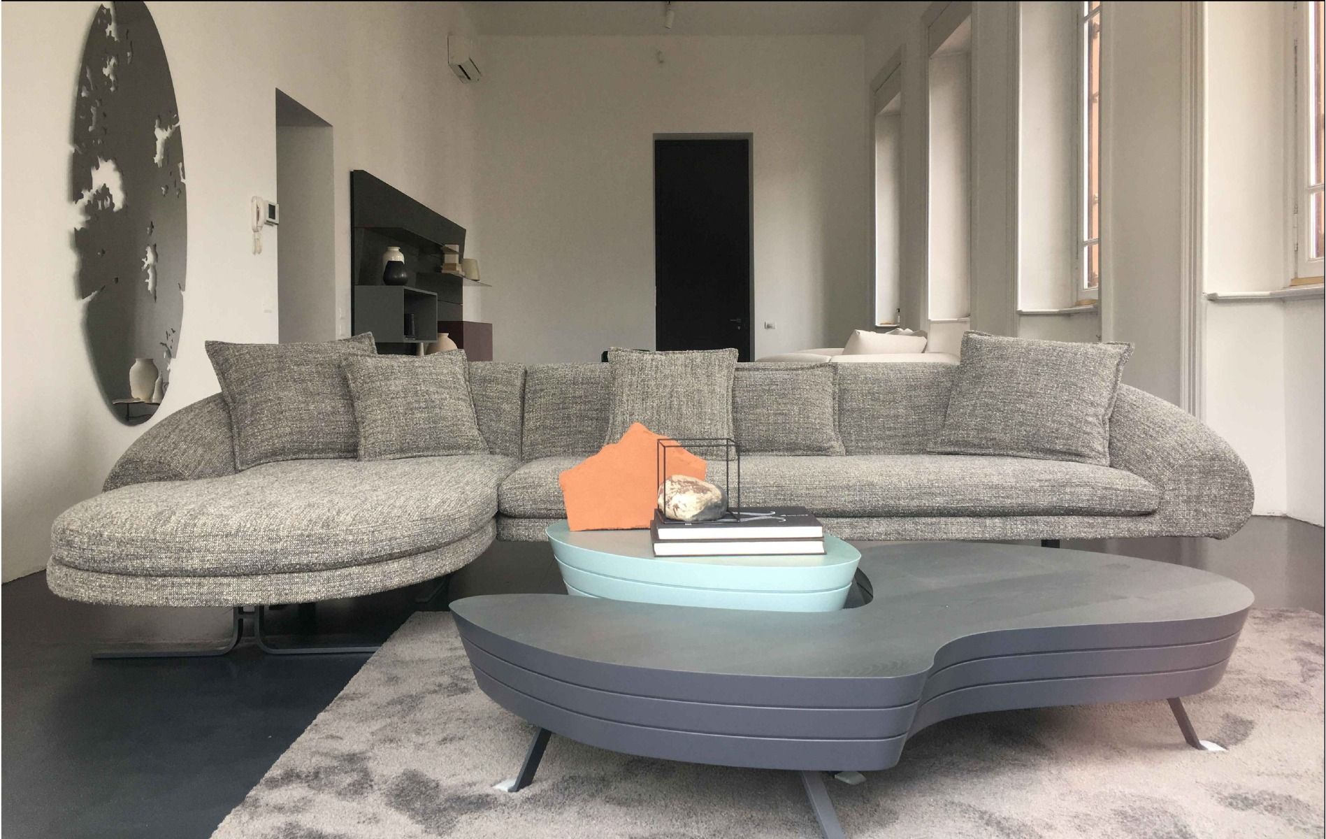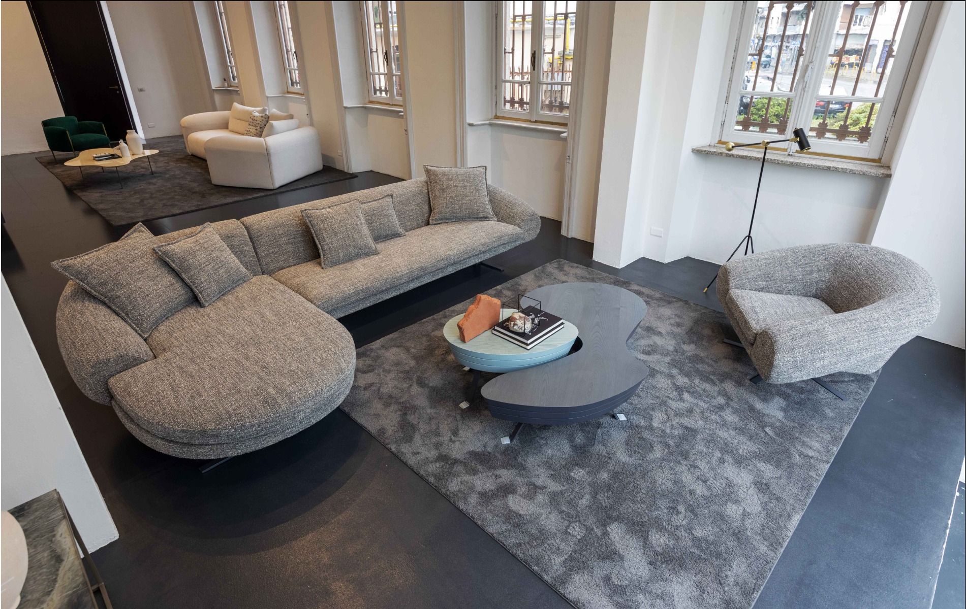 A well-rounded collection: an oval-shaped armrest forms the genesis for the backrest. The soft, eye-catching lines are welcoming and comfortable with an incredibly cosy yet creative look.