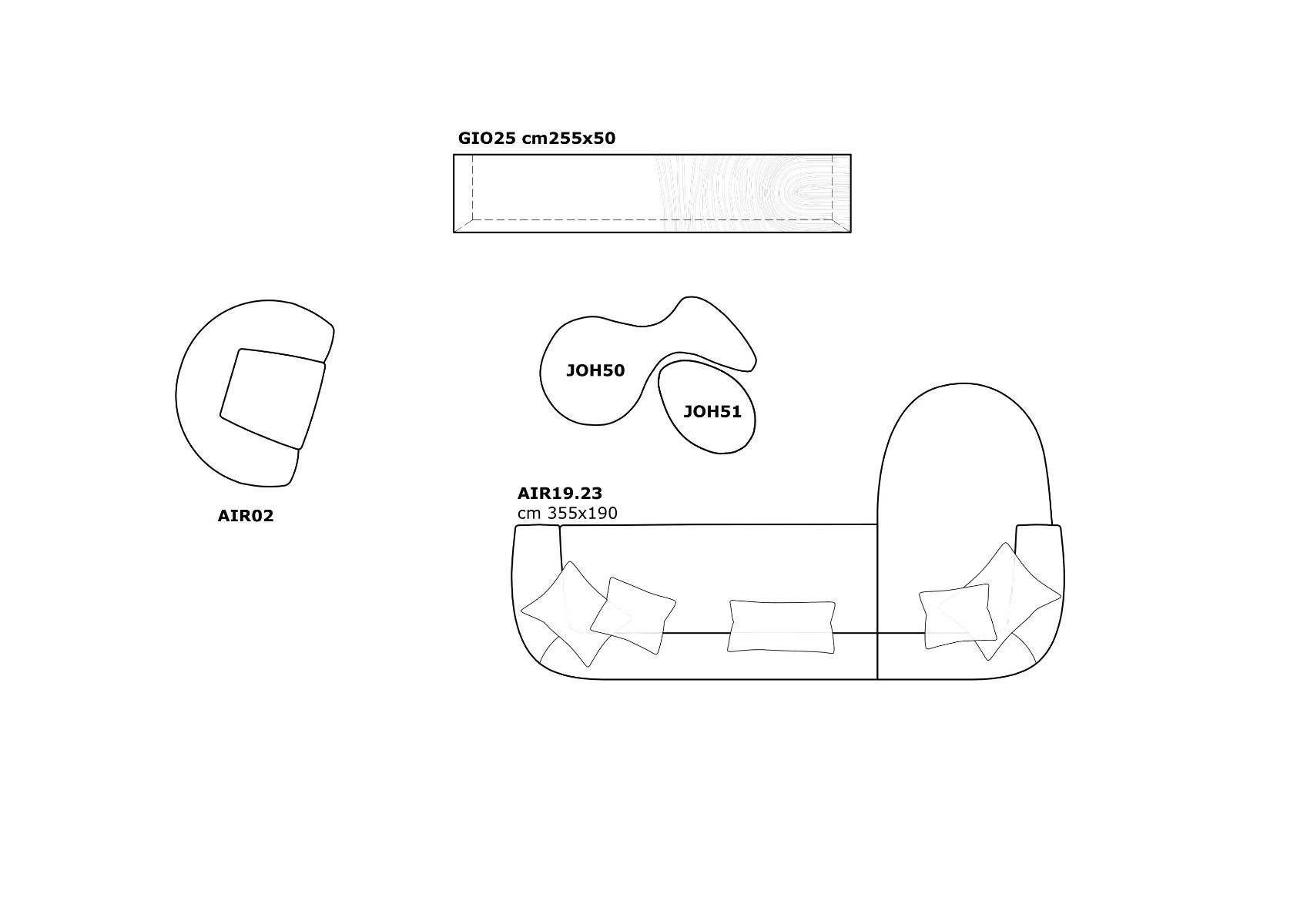 AIRSTRIKE is inspired by a symbol taking shape, like a knot in a ribbon. A well-rounded collection: an oval-shaped armrest forms the genesis for the backrest. The soft, eye-catching lines are welcoming and comfortable with an incredibly cosy yet creative look. The grandeur of the padding is a perfect match for the lightness of the metal base that embellishes the entire project. The collection includes a sofa, pouffe, chair, stool, and an armchair designed with a swivel or fixed base.