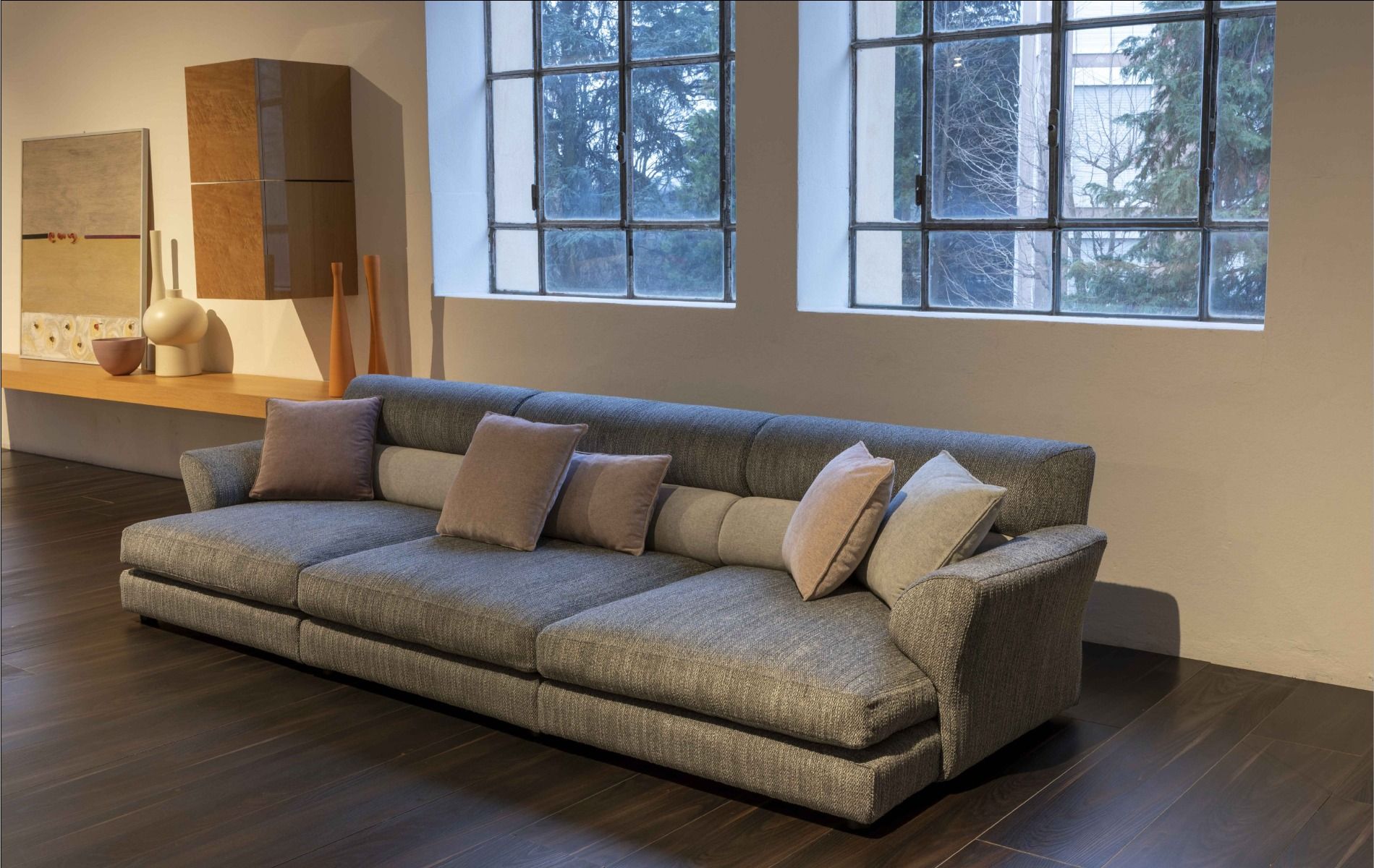 Three-seat sofa Imperial Lounge on lower legs from the Italian manufacturer Il Loft. Model with a rounded back and armrests. Internal frame of metal and wood. Upholstery textile or leather. Offers a wide range of color options. The cushion filling is foam. The sofa is a modern design with comfort and practicality.
