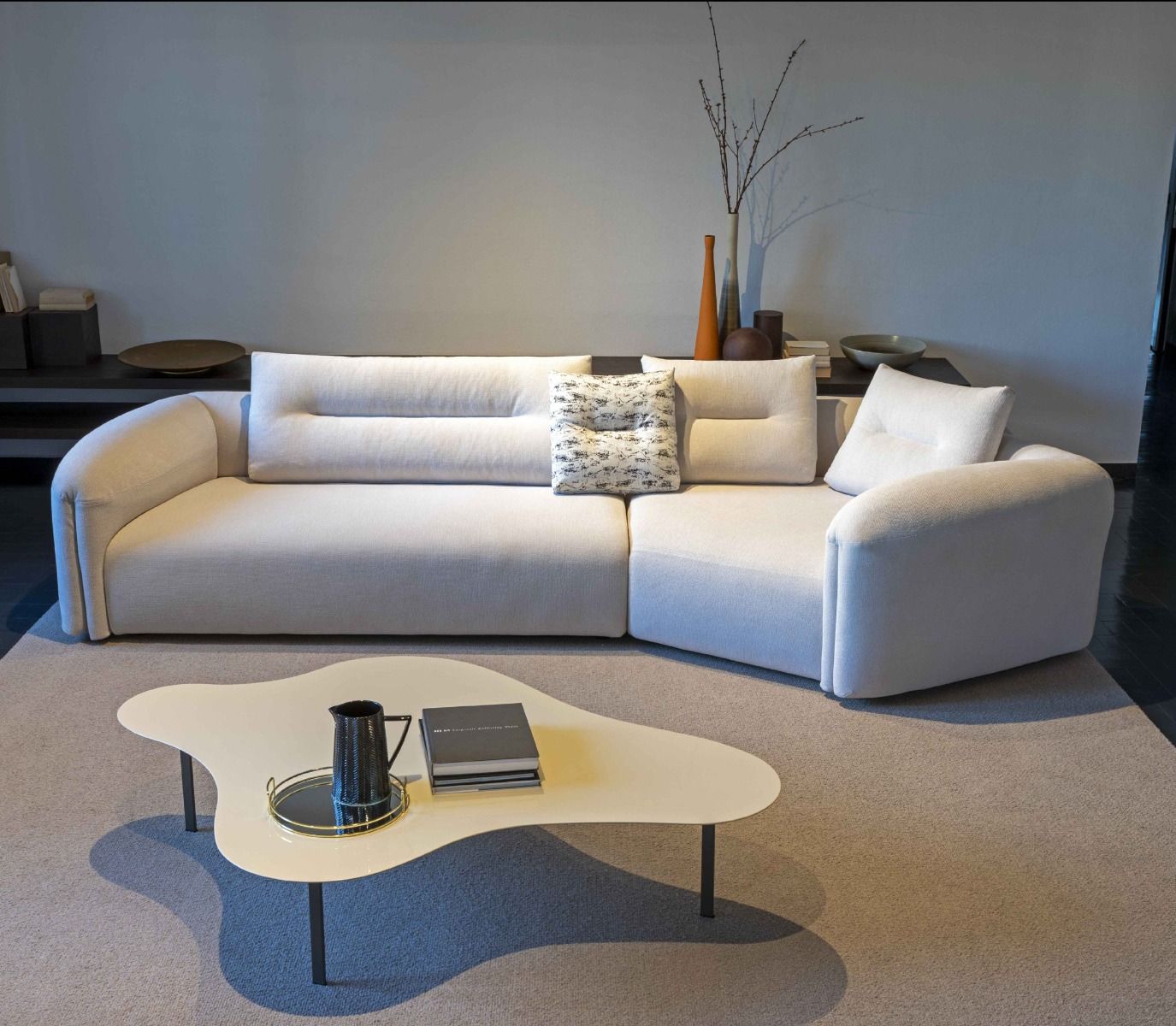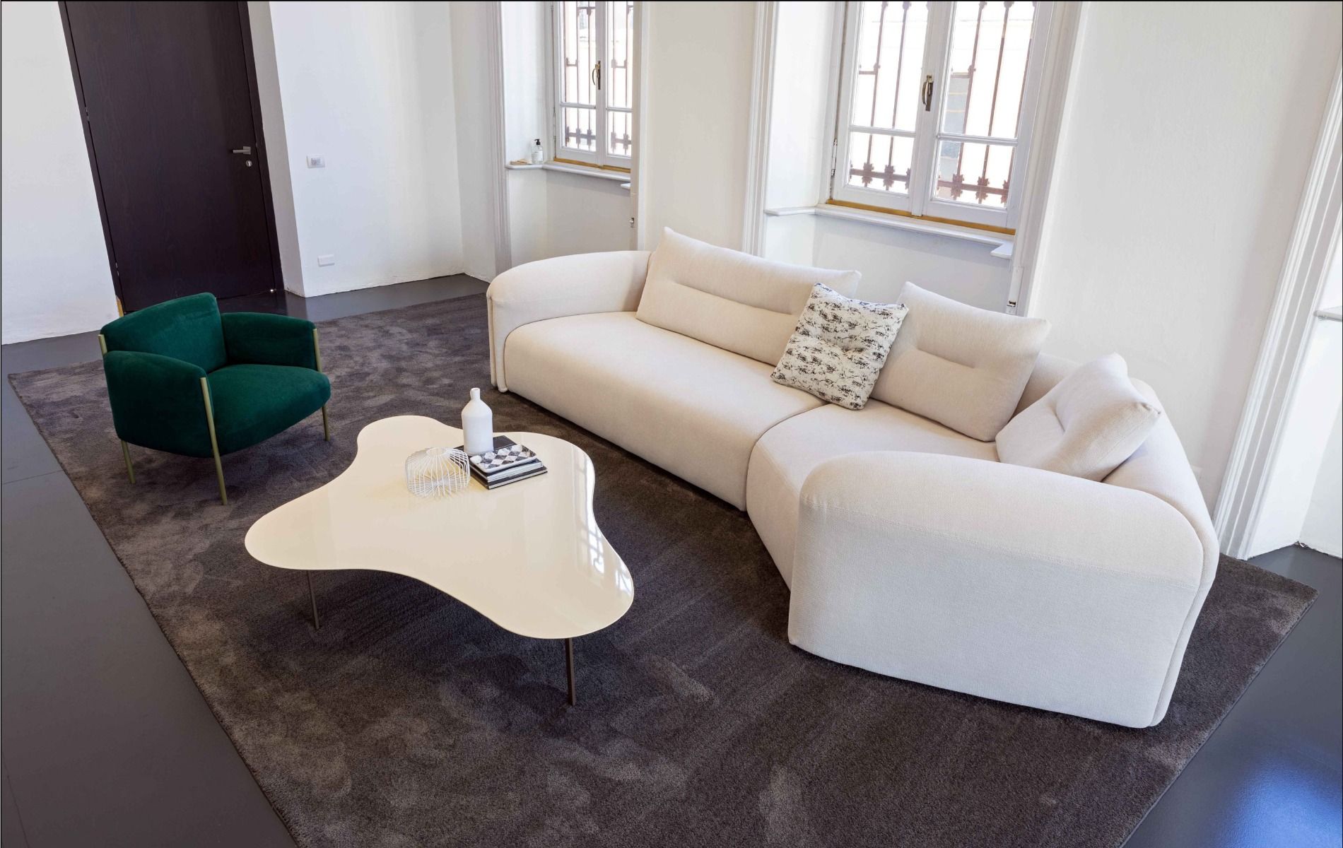 Quentin is designed freestyle. Super-taut lines, curves and cuts control irrepressible fluid forms, alternating opposing introf lexed areas with other rotundly expanding spaces. Inspired by the idea of the sofa as the key piece for everyday comfort, Quentin features deep, comfortable seating offering a dynamic, contemporary way to share the space.