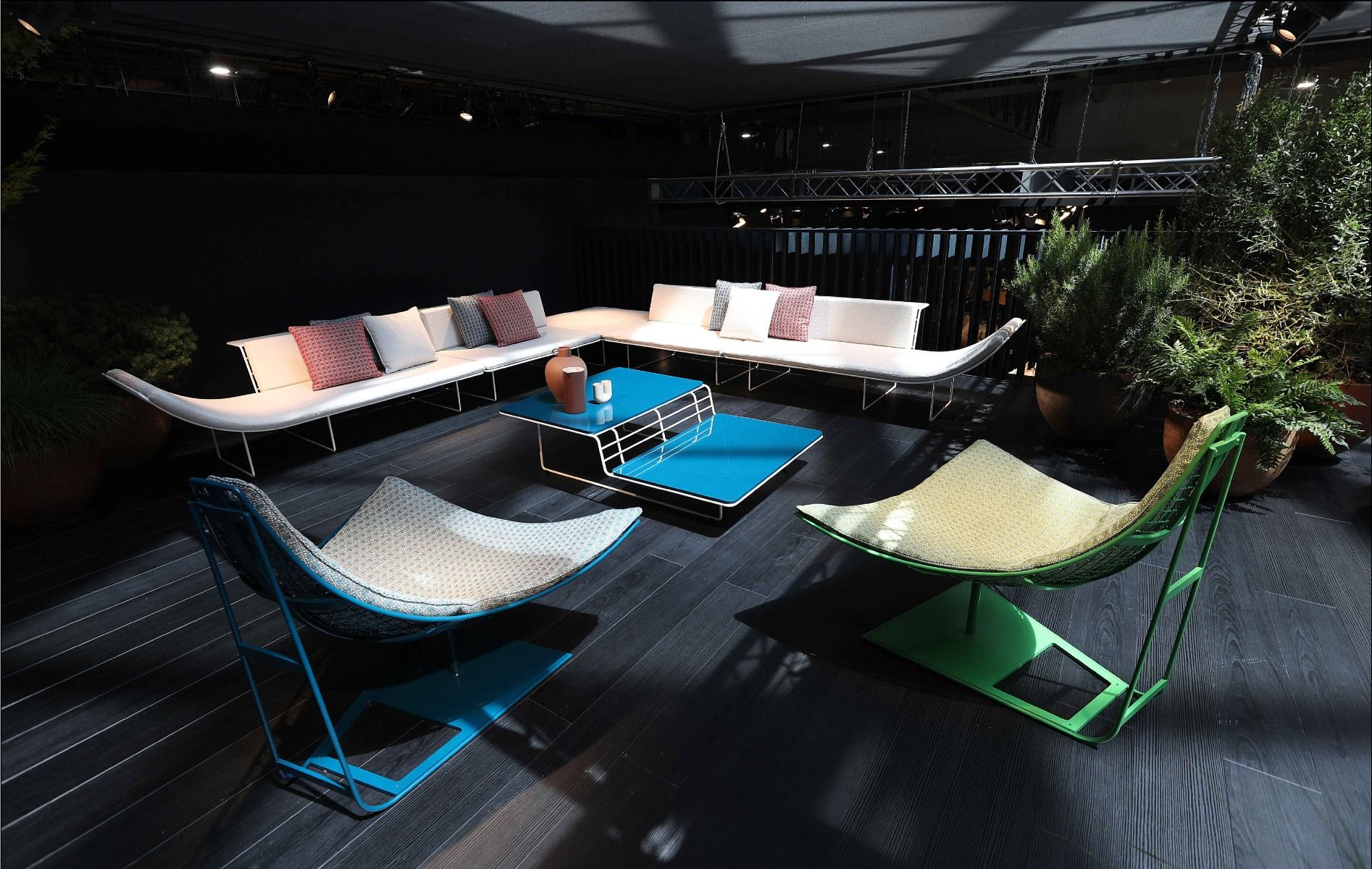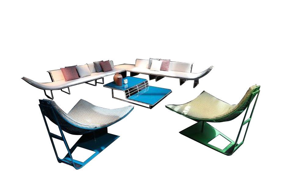 A lightweight, elegant collection featuring steel rods cradling comfortable seat cushions. Numerous pieces in different shapes and sizes make up the entire range. Easy to move and stack, these comfy, simple elements triumph individually yet can be used to create unique compositions. Strong aesthetics and a powerful personality are the standout features of this collection in which colour reigns supreme with innovatively shaped design. The frame takes on a shape and style of its own, rising up past the seating to become armrests.
