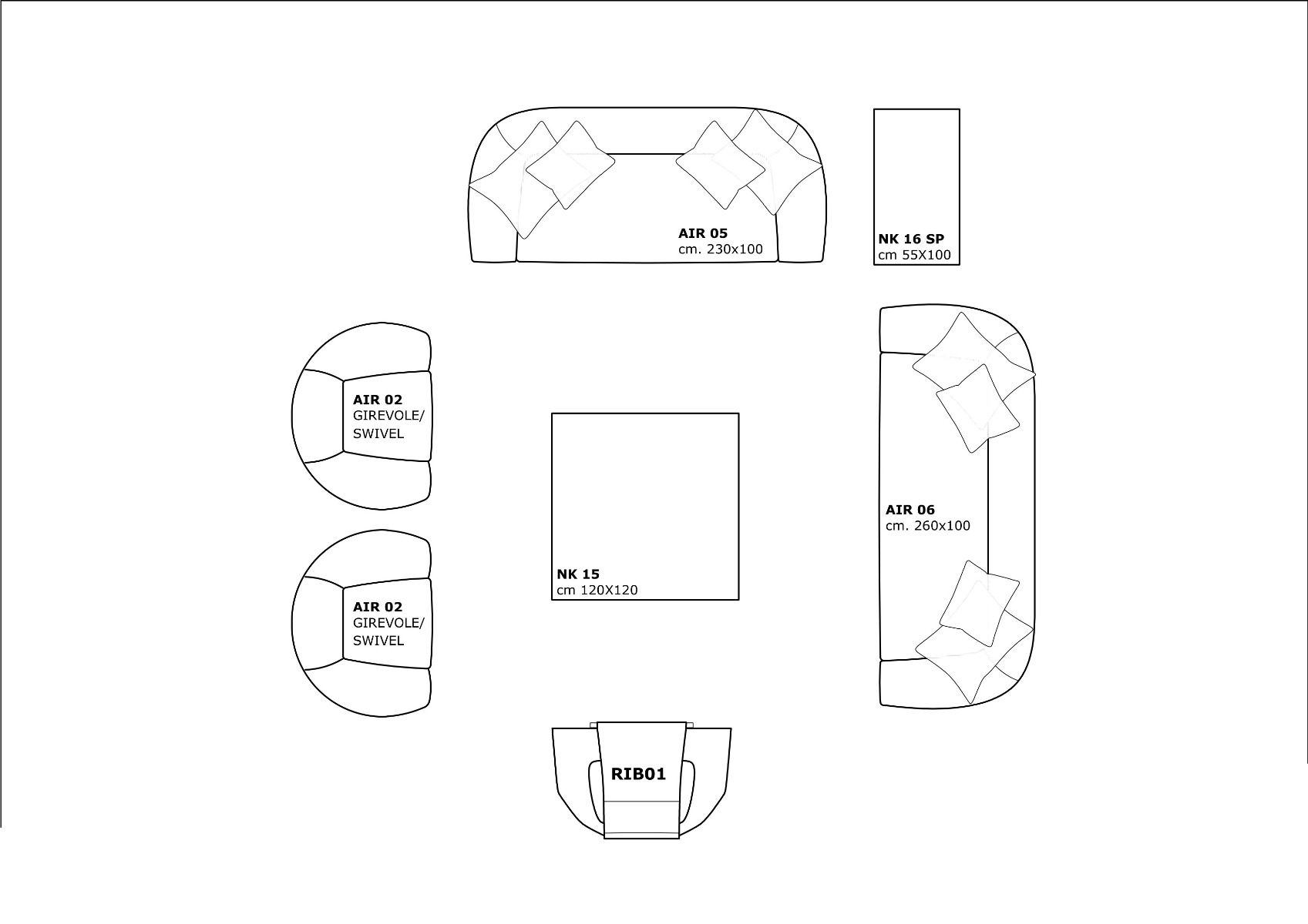 Il Loft AIRSTRIKE SET/Low Table - Elixir/ Sofa - Airstrike Lineare/Armchair - Airstrike Girevole