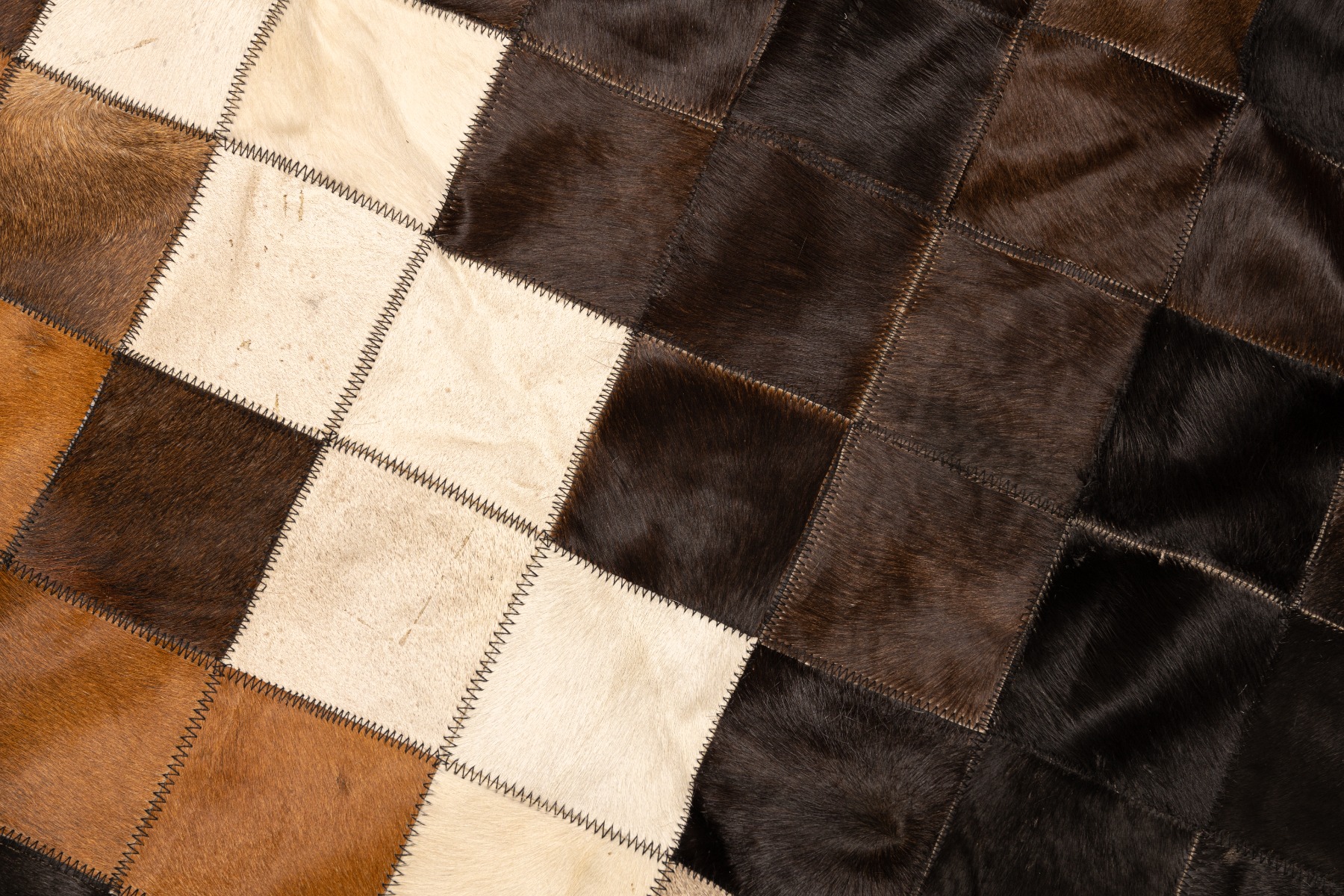 Natural Rug Rectangular with Square Designed Cowhide Patchwork Rug - Brown Black & White