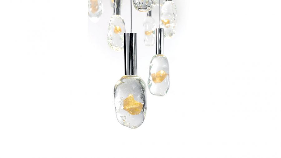 SASSI LAMPADARIO Design, Murano glass Chandelier with Pendant Stone